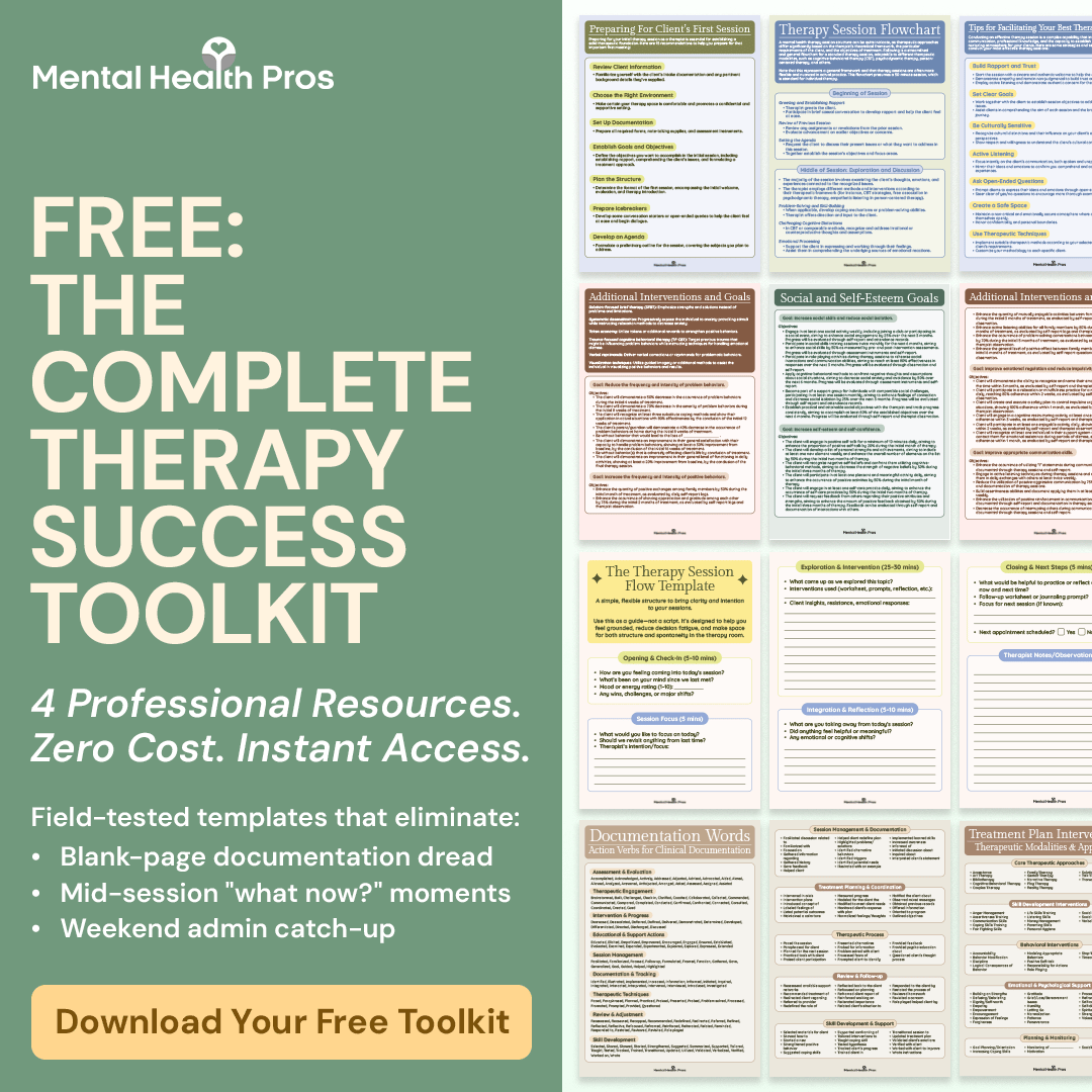 These are the exact resources practicing clinicians use to cut their admin time in half, stay confident in session, and finally leave work at work. No fluff. No catch. Just tools that actually make your day easier.