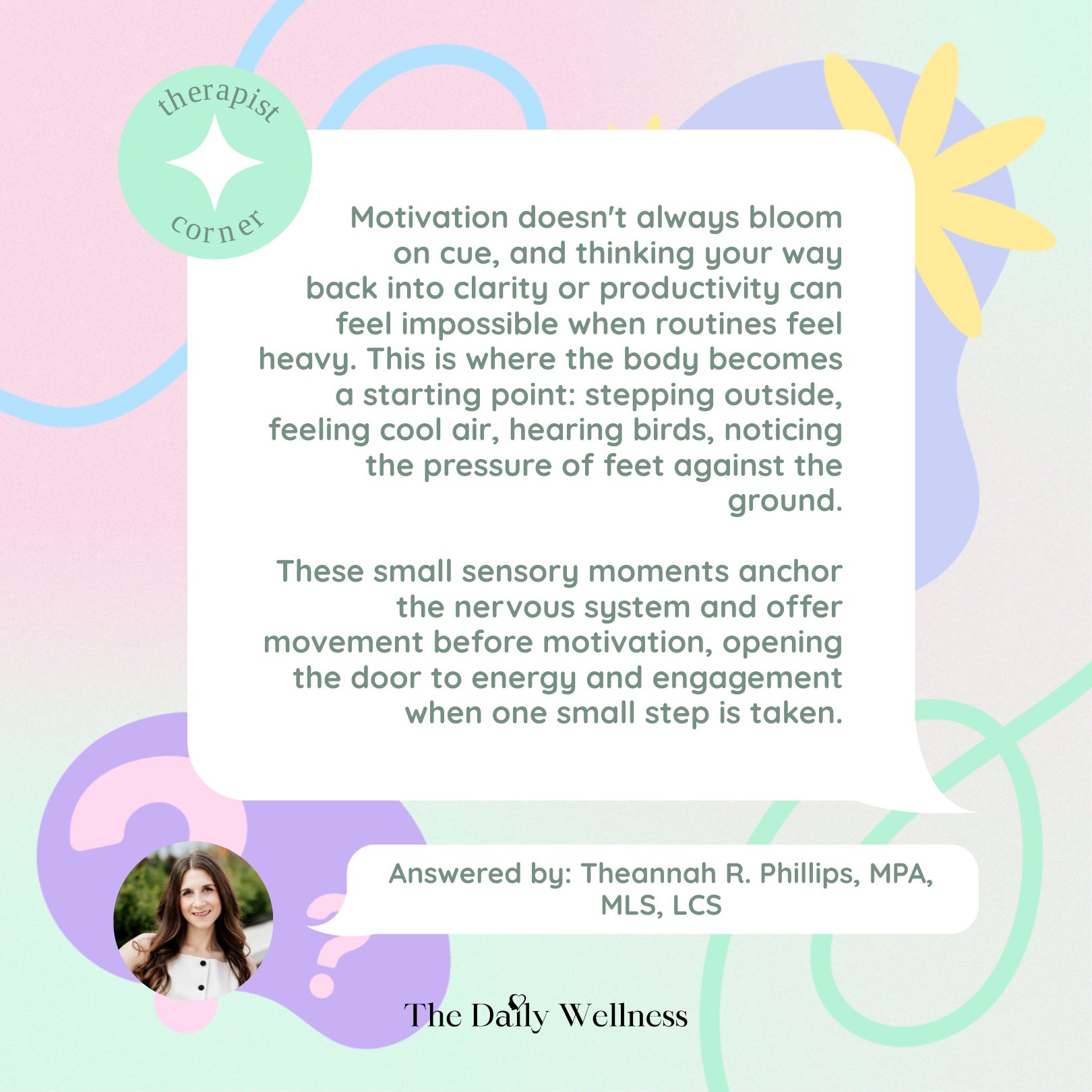 Many people try to restart from the top down: If I could just think differently… feel more inspired… fix my mindset. But during stress or burnout, the nervous system often needs a bottom-up approach.