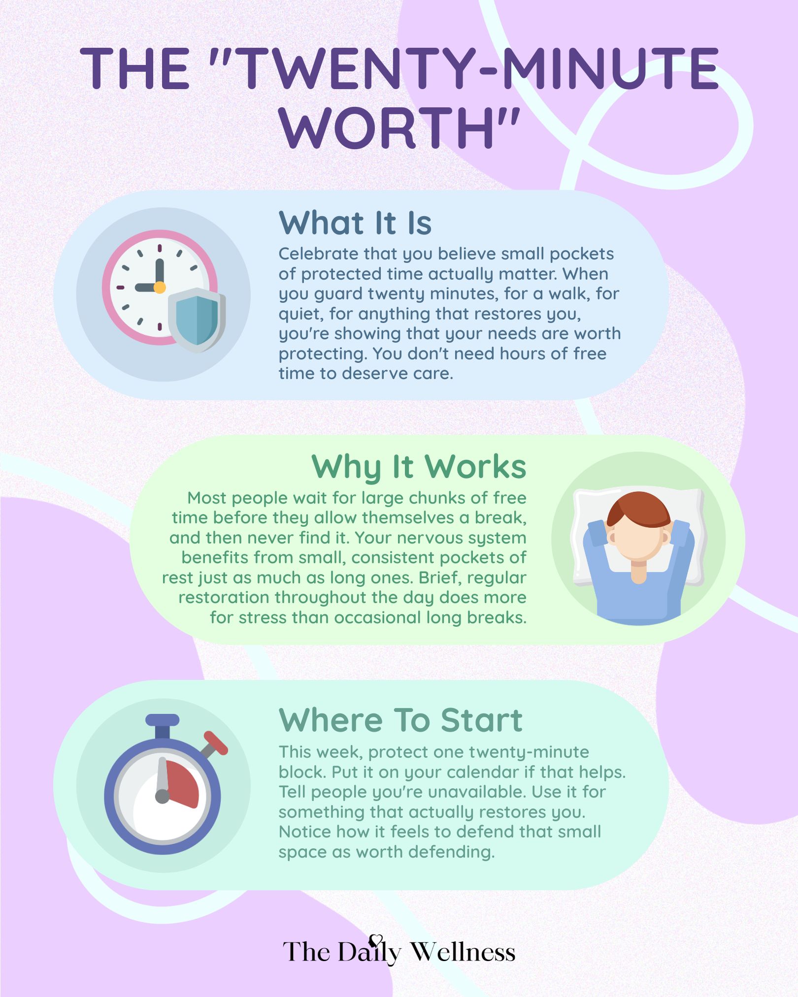 Reframe this week: Instead of "Twenty minutes won't make a difference," try "Protecting even twenty minutes shows I take my own needs seriously."