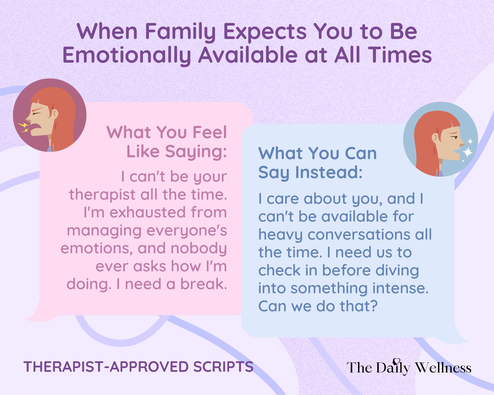 The Scenario: Your family treats you as the person they can always turn to for support, venting, or problem-solving. They reach out whenever they're upset and expect you to drop everything to help.