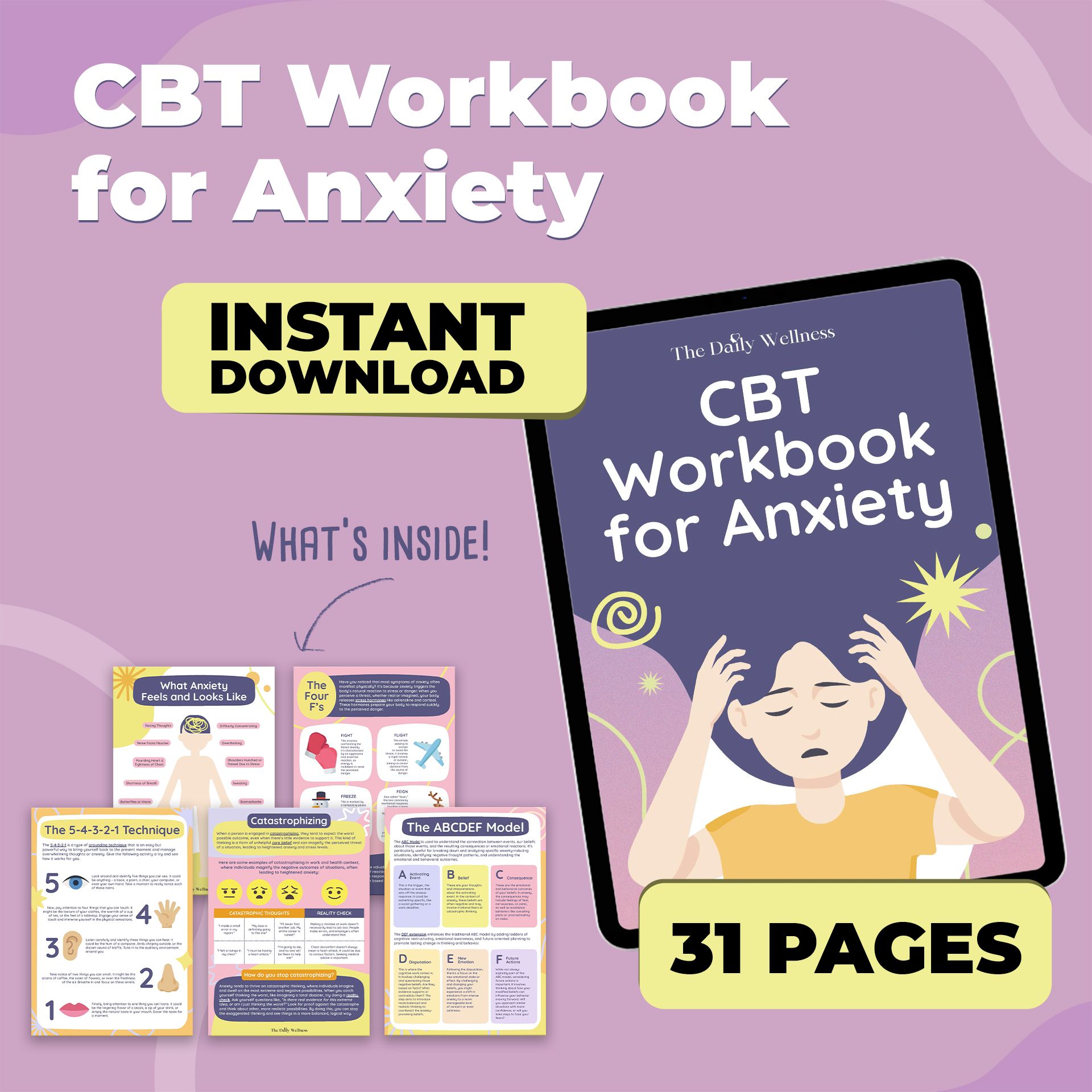 Anxiety isn't a character flaw — it's a pattern. And patterns can be changed. Our Calm Your Mind, Take Back Control workbook is built on Cognitive Behavioral Therapy (CBT), one of the most researched approaches to anxiety. Inside, you'll find grounding exercises, breathing techniques, thought-reframing tools, and step-by-step exposure strategies — all reviewed by licensed therapists. Whether you're managing everyday stress or chronic worry, this 30+ page guided workbook gives you real skills, not just reassurance. Download it instantly and start feeling in control again.